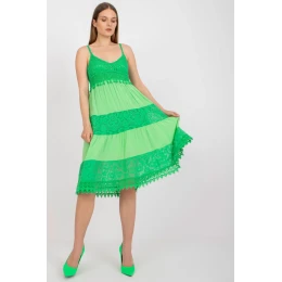 Letné šaty s rozšíreným strihom a ramienkami. Šaty sú podšité a majú srdiečkový výstrih. Šaty s ozdobnou čipkou a prelamovaným vzorom.