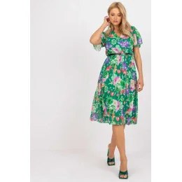 Letné šaty z kvetinovej tkaniny s rozšíreným strihom, krátkymi rukávmi, obálkovým výstrihom a nariaseným lemom. Šaty majú podšívku a opasok.
