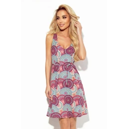Voľné trapézové šaty s výstrihom a opaskom. Šaty z modrej a ružovej mandalovej látky. Značka Numoco. Vyrobené v Poľsku.