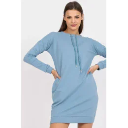 Teplákové šaty s dlhými rukávmi, okrúhlym výstrihom a pásikom na zaviazanie. Šaty majú bočné vrecká.