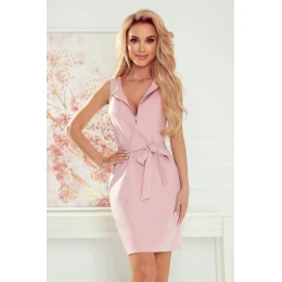 Šaty so zlatým zipsom, vreckami a opaskom. Šaty v špinavo ružovej farbe. Šaty ušité z mierne elastického materiálu. Značka Numoco.