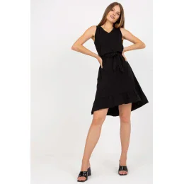 Letné šaty s rozšíreným strihom bez rukávov. Šaty majú asymetrický lem zdobený volánikom a výstrih do V. V páse je aj viazačka.
