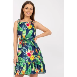Letné šaty so zaväzovaním na ramienka. Zaväzovanie v páse, volánik v spodnej časti.