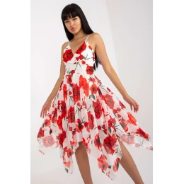 Letné šaty s nastaviteľnými ramienkami. Obálkový výstrih s všitými vystuženými košíčkami. Asymetricky rozšírená spodná časť. Šaty s podšívkou.