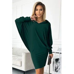 Netopierie šaty s kapucňou. Je vyrobená z pružnej zelenej látky so semišovou štruktúrou. Možno ich nosiť rôznymi spôsobmi. Značka Numoco. Poľská produkcia.