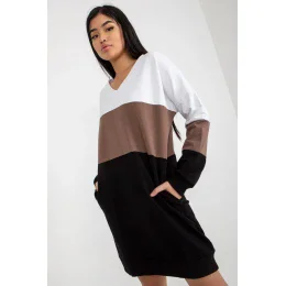 Mikinové šaty s dlhými rukávmi a srdiečkovým výstrihom. Šaty z látky v troch farbách. Vrecká na bokoch. Ideálne pre každodenné nosenie.