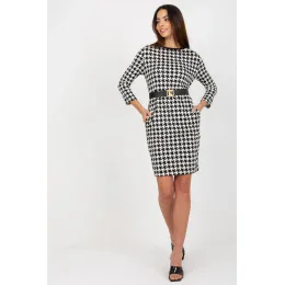 Šaty ceruzkového strihu s dlhými rukávmi a okrúhlym výstrihom. Šaty s vreckami a opaskom na doplnenie vzhľadu.
