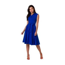 Šaty bez rukávů s límečkem a otevřeným předním dílem, s mírně rozšířenou spodní částí. Ideální do práce i na procházky v teplých dnech.