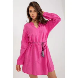Bavlnené šaty s dlhými rukávmi, nastaviteľnými rukávmi a srdiečkovým výstrihom. Šnúrka v páse.