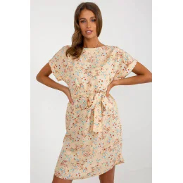 Letné šaty s krátkymi rukávmi a okrúhlym výstrihom. Opasok na zaviazanie v páse. Šaty z látky so zaujímavým kvetinovým vzorom.