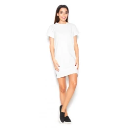 Mikinové šaty rovného strihu. Šaty s krátkymi rukávmi. Zipsy všité do bokov v spodnej časti.
