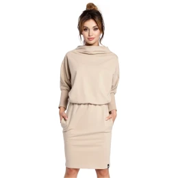 Atraktívne kimonové šaty s rebrovanými rukávmi, vysokým komínovým výstrihom a praktickými bočnými vreckami. Voľnejší strih s elastickým pásom.