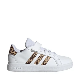 Detská obuv adidas Grand Court 2.0 EL C IH7842 spája pohodlie a moderný dizajn. Ľahká obuv poskytuje pohodlnú ochranu pri každodennom nosení. Syntetický zvršok s textilnou podšívkou a jazykom. Gumová podrážka. Pohodlné zapínanie na suchý zips. Elastická gumička pripomínajúca šnúrku.