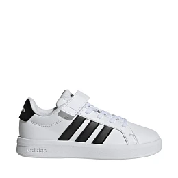 Detská obuv adidas Grand Court 3.0 White HP3531 spája pohodlie a moderný dizajn. Ľahká obuv poskytuje pohodlnú ochranu pri každodennom nosení. Syntetický zvršok s textilnou podšívkou. Gumová podrážka. Pohodlné zapínanie na suchý zips. Elastické šnúrky pripomínajúce šnúrky.