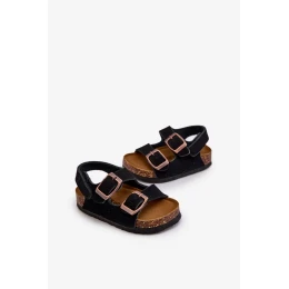 Detské sandále na korkovej platforme, zapínanie na suchý zips, čierne Rorria