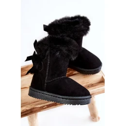 Dětské Teplé Sněhule Semišové s Mašlemi Černe Funky