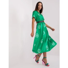 Zelené midi koktejlové šaty s potlačou.