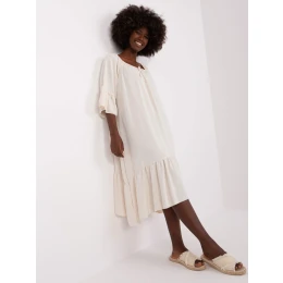 Svetlo béžové šaty s volánom a 3/4 rukávmi.