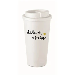 mohrnek "Humor na Cestách" - Pro Vaše Teplé Momenty Kdekoli Objevte náš stylový termohrnek s nápisem DĚDA VÍ VŠECHNO, který je ideální pro milovníky kávy a čaje s vtipným smyslem pro humor! Tento praktický a trendy termohrnek vám umožní vychutnávat váš oblíbený teplý nápoj kdekoli a kdykoli, a to s úsměvem na tváři díky jeho vtipnému nápisu. S objemem ideálním pro vaši ranní kávu nebo odpolední čaj, tento termohrnek udrží váš nápoj teplý po dlouhou dobu, zatímco vy se můžete věnovat svým každodenním aktivitám. Jeho robustní konstrukce zajišťuje, že váš nápoj zůstane bezpečný a teplý, ať už jste v práci, na výletě nebo jen na procházce. Termohrnek je navíc vyroben z odolných materiálů, které zaručují dlouhodobou použitelnost a snadnou údržbu. Jeho ergonomický design a zapečetěné víčko znamenají, že ho můžete vzít s sebou kamkoli bez obav z rozlití. Udělejte si radost tímto originálním termohrnkem nebo ho darujte