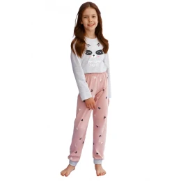 Dievčenské pyžamo 2585 TARO - vyrobené z kvalitnej a mäkkej bavlny - tričko je sivé s dlhými rukávmi - zdobené farebnou potlačou - dlhé vzorované nohavice - pohodlný elastický pás Zloženie materiálu: 100% bavlna