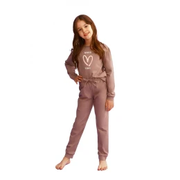 Dievčenské pyžamo 2645 TARO - vyrobené z kvalitnej a mäkkej bavlny - tričko je hnedé s dlhými rukávmi - zdobené farebnou potlačou - dlhé hnedé nohavice - pohodlný elastický pás Zloženie materiálu: 100% bavlna
