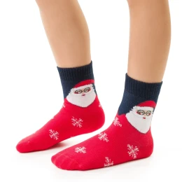 Dievčenské ponožky 014 042 Steven - červené - vyrobené z kvalitnej bavlny - vianočný motív