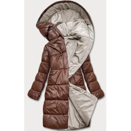 Dlhá obojstranná zimná bunda hnedá/kapučíno (l22-9852-300/62)