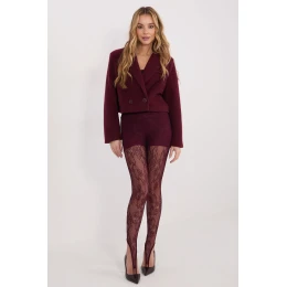 Tieto elegantné dámske legíny vyrobené z elastickej zmesi viskózy a elastanu majú pestrú štruktúru materiálu, ktorá im dodáva jemne dekoratívny, čipkovaný charakter. Model má strednú (regular) výšku, ktorá zaručuje pohodlné nosenie a komfort pri nosení. Zúžené nohavice krásne zvýrazňujú postavu, zatiaľ čo absencia zapínania a vreciek podčiarkuje minimalistický, priliehavý strih. Zaujímavým a praktickým detailom je lem na špičke v spodnej časti nohavíc, ktorý pomáha udržať legíny na mieste a dodáva celku jedinečný vzhľad. V hornej časti je použitá podšívka, ktorá zvyšuje pohodlie a poskytuje lepšie krytie. Tento model je ideálny pre ženy, ktoré ocenia eleganciu v modernom, originálnom dizajne.