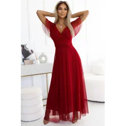 Šaty NASTIA značky Numoco Basic sú jemnou kreáciou s dlhým strihom a krátkymi rukávmi. Sú vyrobené z ľahkého bordového tylu, ktorý im dodáva ľahkosť a vzdušnosť. Šaty majú vystužené košíčky pre skvelú oporu a šnúrka v páse jemne zvýrazňuje pás. Ide o výnimočný dizajn so ženským a romantickým charakterom. Vyrobené v Európe, spájajú vysokú kvalitu spracovania s elegantným dizajnom. Ideálne na večerné vychádzky a špeciálne udalosti.