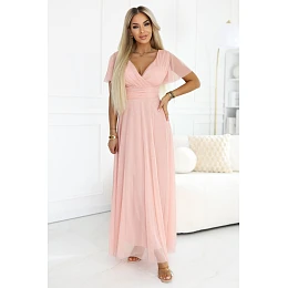 Tieto broskyňové maxi šaty s jemným leskom pôsobia od prvého momentu ako wow - zoštíhľujú postavu, zvýrazňujú pás a krásne sa pohybujú. Zavinovací výstrih do V dodáva zvršku ľahkosť a ľahké rukávy jemne padajú na ramená. Ideálne, keď chcete vyzerať elegantne a zároveň sa cítiť pohodlne počas celého dňa aj večera. Broskyňové tylové maxi šaty so zavinovacím výstrihom a jemným broskyňovým leskom krásne zvýrazňujú pás a očaria ľahkosťou pohybu. Skvele sa hodia na svadby, plesy a elegantné večierky.