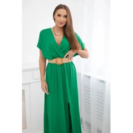 Dlhé šaty s ozdobným opaskom 6012F zelené - Kesi
