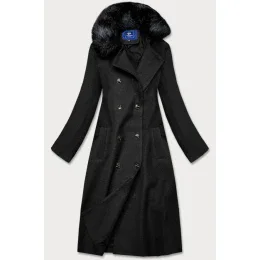 Dlhý čierny kabát s kožušinovým golierom (20201202)