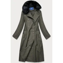 Dlhý kabát v khaki farbe s kožušinovým golierom (20201202)