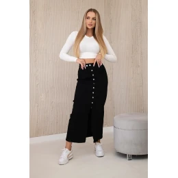 Dlhá džínsová sukňa s gombíkmi je klasický a všestranný kúsok oblečenia, ktorý spája eleganciu s ležérnym štýlom. Je vyrobená z kvalitného denimu, čo zaručuje odolnosť a pohodlie pri nosení. Dlhý strih jej dodáva elegantný charakter a gombíky na prednej strane sú módnym akcentom, ktorý uľahčuje obliekanie a vyzliekanie sukne. Táto sukňa je ideálna na rôzne príležitosti, od každodenného vzhľadu až po formálnejšie príležitosti, a dokonale sa kombinuje s topy, košeľami a svetrami na vytvorenie elegantných a pohodlných outfitov. K dispozícii vo veľkostiach XS, S, M, L.