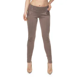 Priliehavé nohavice s ozdobnými gombíkmi. Ideálna voľba pre mnoho príležitostí. Nohavice s nakladanými vreckami.