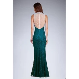 Dlhé šaty v tvare morskej panny v zelenej farbe. Vrchná vrstva šiat je vyrobená z čipky. Šaty sa zapínajú na krytý zips. Ideálne na večernú párty.