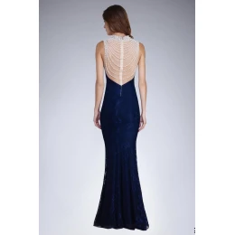 Dlhé šaty v tvare morskej panny v tmavo modrej farbe. Vrchná vrstva šiat je vyrobená z čipky. Šaty sa zapínajú na krytý zips. Ideálne na večernú párty.
