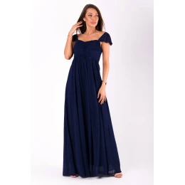 Dlhé elegantné šaty bez ramienok s volánikmi. Vrchná časť s ozdobnými záhybmi, spodná časť voľná. V zadnej časti je všitá elastická látka, ktorá v prípade potreby zväčší objem až o 10 cm. Skvele sa hodí na mnoho príležitostí.