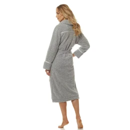 Pohodlný dlhý dámsky župan, ktorý je vyrobený z mäkkej tkaniny typu "soft".