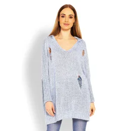 Nadýchaný sveter s kapucňou. sveter s ozdobnými otvormi. oversize strih so špicatým výstrihom. sveter z mäkkej priadze.