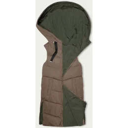 Béžová a khaki dlhá dámska obojstranná vesta (B8159-12)