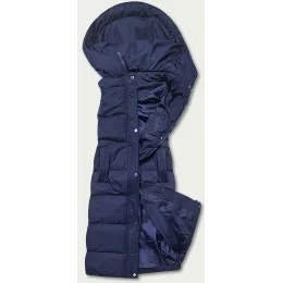 Tmavomodrá dlhá dámska páperová vesta (5M728-215)