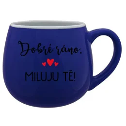 DOBRÉ RÁNO. MILUJEM ŤA! - modrý keramický hrnček 300 ml