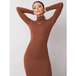 Hnedé rebrované priliehavé šaty s rolákom Rue Paris (5133)
