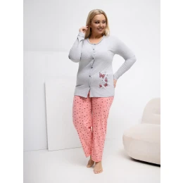 Modelka má na sebe veľkosť XL. Rozmery modelky: výška 167 cm, prsia 118 cm, pás 90 cm, boky 118 cm.