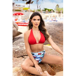 Tieto úžasné plavky sú dokonalou kombináciou elegancie, pohodlia a zmyselnosti. Sú vyrobené z najkvalitnejších materiálov, ktoré zaručujú nielen pohodlie, ale aj odolnosť, a sú ideálnou voľbou pre ženy, ktoré oceňujú módu a funkčnosť. Vďaka mäkkým, mäkkým košíčkom poskytuje podprsenka pohodlnú oporu a jemné zvýraznenie tvaru. Možnosť zaviazať si ho na chrbte alebo za krkom vám dáva nielen väčšiu voľnosť pri nosení, ale aj štýlovú rozmanitosť, ktorá vám umožní experimentovať s rôznymi vzhľadmi. Vďaka trom spôsobom zapínania podprsenky je dosiahnutie efektu pevných, veľkých a zmyselných pŕs jednoduché a dostupné pre každú ženu. Je ideálny pre tých, ktorí chcú zvýrazniť svoje prednosti a cítiť sa sebavedomejšie na pláži alebo pri bazéne. Plavky sa skladajú z dvoch častí, čo vám dáva možnosť prispôsobiť si ich individuálnym preferenciám a tvaru tela. Nohavičky s pohodlným vyšším strihom poskytujú ľahkosť a jemnosť a zároveň umožňujú úplnú voľnosť pohybu. Ich vzorovaný dizajn im dodáva charakter a originalitu a priťahuje pozornosť svojím jedinečným štýlom. Plavky sú podšité a zaručujú nielen estetiku, ale aj bezpečnosť a pohodlie pri nosení. Zbalené v taške sú praktické a ľahko sa prenášajú. Plavky boli navrhnuté a ušité v Poľsku, takže sú nielen výrazom poľskej krajčírskej tradície, ale aj zárukou najvyššej kvality spracovania a zmyslu pre detail. Ideálne pre ženy, ktoré sa chcú na pláži alebo pri bazéne cítiť sebavedomo a príťažlivo.