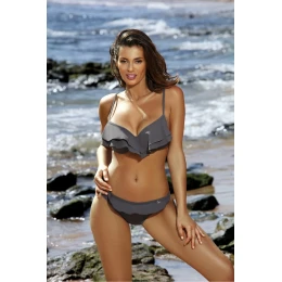 Jemné, veľmi ženské dvojdielne plavky s okúzľujúcimi volánikmi: Matylda M-469.Tieto plavky vám prepožičia výnimočný šarm (a navyše vám umožní zabudnúť na prípadné komplexy). Má skvelý strih. Bol vyrobený pre malé a stredné poprsie - dobre zbiera, tvaruje a dvíha prsia a výrazne ich zväčšuje. Výstrih získa pôvab, sex-appeal a vy maximálnu ženskosť. Jej tajomstvo? - sú košíčky vystužené jemnou penou, s kosticami a pomerne veľkou push-up výplňou, ktorá je tentoraz umiestnená trvalo vo vnútri podprsenky. Volániky vo výstrihu sú jedným z hlavných trendov leta. Ramienka sú nastaviteľné a obvod sa vzadu zaväzuje. Dopĺňajú ich koketné nohavičky, rovnako s volánikom. Plavky sú vyrobené z krásnej talianskej tkaniny Carvico a dodávajú sa v rade atraktívnych plážových farieb. Vyberte si ju vo svojom obľúbenom!