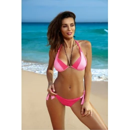 Fenomenálne bikiny, tentoraz s vystuženými push-up košíčkami, v krásnych prázdninových farbách. Oblečte si plavky, ktoré vám padnú do oka! Skvelý strih podprsenky umožňuje pekne zhrnúť poprsie, pozdvihnúť ho a dodať mu žiaduci, atraktívny tvar. Základom strihu je podprsenka vystužená jemnou penou, s push-up výplňou umiestnenou v spodnej časti, bez kostíc, typu "sexy bikiny". Výstrih s ozdobnou šnúrkou. Obvod a ramienka sa pohodlne zaväzujú, čo umožňuje prispôsobiť plavky vašim potrebám. Za zmienku stoja aj báječné farby. Rezervujte si ju pre seba! Nohavičky sa zvodne zaväzujú na bokoch, vyzerajú krásne a žensky a majú pohodlný strih. Vrchný diel má na látke sladké ozdobné riasenie.