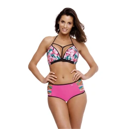 Jedny z najzaujímavejších plaviek z kolekcie na leto 2019, výrobca Marko. Model Molly M-504, ktorý kombinuje niekoľko módnych plážových trendov. Čierne pruhované gumičky vo výstrihu, ozdobné lemovanie pod prsiami, pruhy na bokoch, kvety a vysoké nohavičky, ktoré vám zaručia úplné pohodlie, a to nie je všetko... Podprsenka má vystužené košíčky s push-up efektom, ktoré umožňujú pekne zhromaždiť a vytvarovať prsia a krásne ich prezentovať vo výstrihu. Push-up je v modeli trvalo umiestnený, nie je z plaviek vyberateľný a dodáva sa vo všetkých veľkostiach. Podprsenka sa zaväzuje ako bikiny, vzadu aj za krkom. Kvetinový vršok sa krásne hodí k hladkému spodnému dielu. Krásne farby a talianska tkanina najvyššej kvality. To je ono!