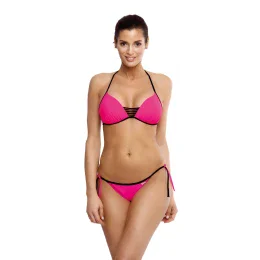 Zvodné dvojdielne plavky v štýle bikín. Má hladké košíčky vyplnené push-up penou, vďaka ktorej prsia vyzerajú bližšie k sebe, sú zdvihnuté a zväčšené. Push-up sa dodáva vo všetkých veľkostiach a nie je možné ho z modelu vybrať. Uprostred podprsenky sú módne čierne gumové ramienka. Kontrastné lemovanie dodáva postave charakter a krásne zvýrazní vaše opálenie. Skvelé nohavičky sa zaväzujú na oboch stranách – vďaka nim si môžete veľkosť spodného dielu prispôsobiť svojim potrebám. Krásna, vysoko kvalitná talianska látka v tucte nádherných farieb, z ktorých si môžete vybrať. Na pláži bude vyzerať jednoducho fenomenálne (a vy - žensky a sexy). Ramienka a obvod podprsenky sa pohodlne zaväzujú.